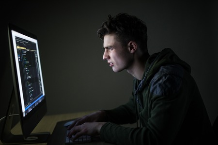 The man in the dark has been programming, website development, software.