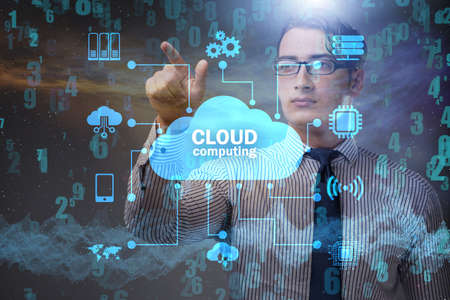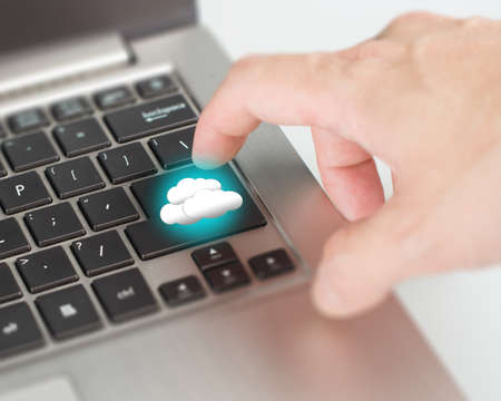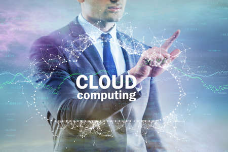 businessman use finger touch cloud computing service button for connecting