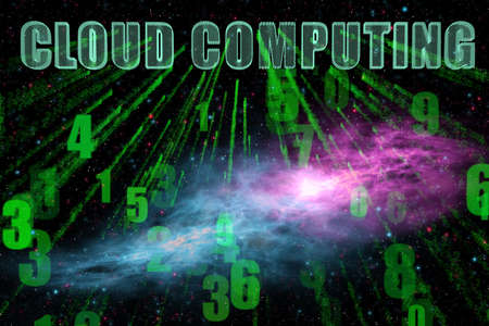 Cloud technology, cloud computing symbol, random numbers and others elements which creating abstract 3D information technology illustration