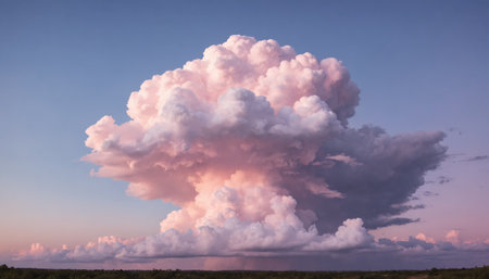 A white and fluffy cloud grows very high, heralding a storm. Ai generated.