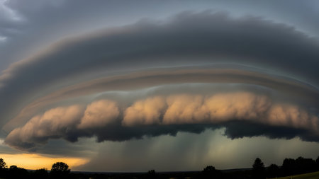 Dramatic cloudscape asperitas cloud and dark sunset sky formation