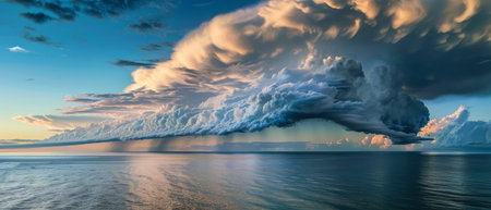 Evening sky with dramatic clouds over the sea with sculpted 3D cloudscape.