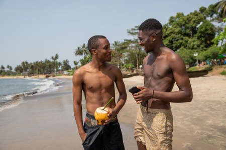 ACCRA, GHANA - Jan 8, 2017: Unidentified Ghanaian young men hang out on the street. People of Ghana suffer of poverty due to the economic situation