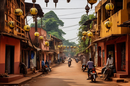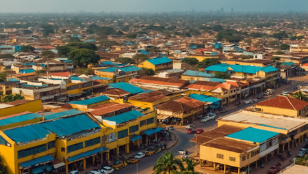 Kumasi, Ghana - April 06, 2022: Crowded African Road with Local Ghana People in Kumasi city