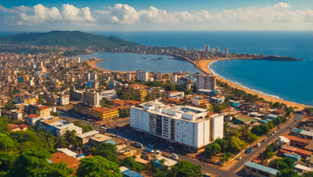 Aerial view of the city of Dakar, Senegal, by the coast of the Atlantic city