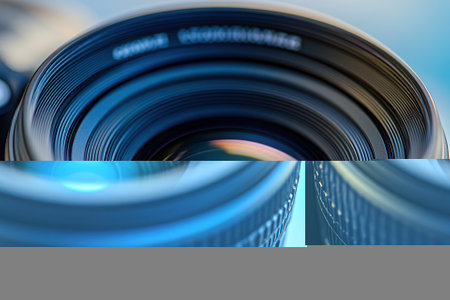 Close-up of a camera lens, showcasing its intricate details and reflective surface. (1)