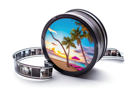 Viewfinder Reel with Childhood Vacation Photos isolated on white background