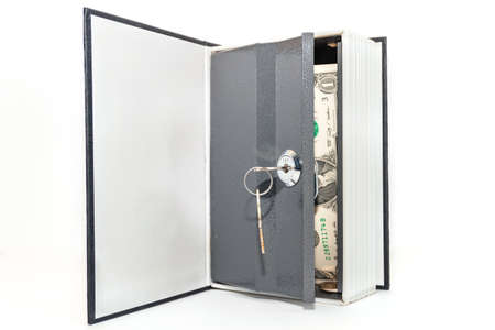 dollar bills in vault isolated on white background. open safe with money.