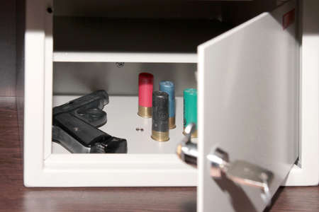 abstract scene keeping weapon in metallic safe