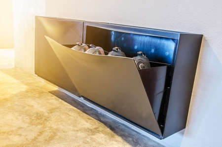 A modern design of shoe boxes for storage the shoes in hotel