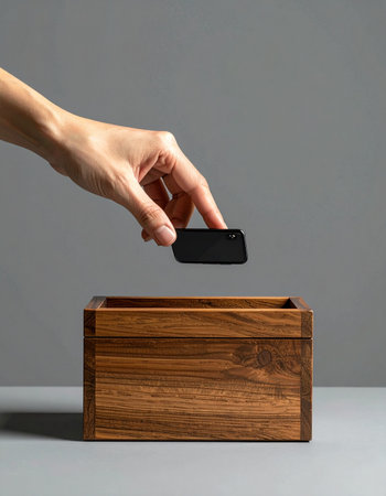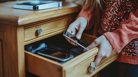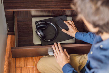 A man puts gadgets in a cabinet for digital detox