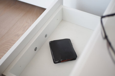 a wallet in a open drawer closeup.