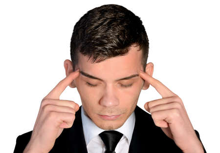 Isolated young business man thinking