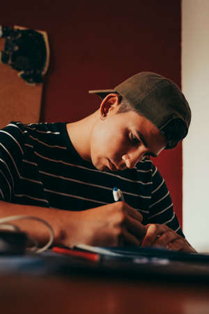 caucasian boy doing homeworks