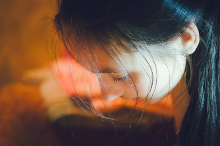 Asian man people in the dark Seeing he was thinking hard or anxious. In the eyes indicate stress and depression,Vintage mood and tone