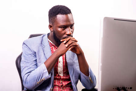 Focused IT developer watching on computer monitor