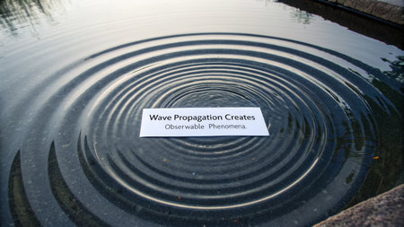 Concentric ripples expanding outwards across a dark water surface represent wave propagation, perfect for illustrating physics concepts and scientific principles.