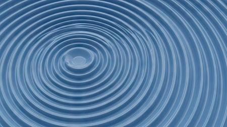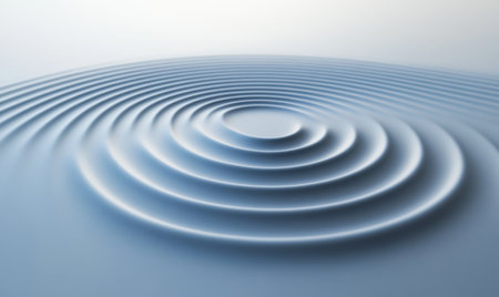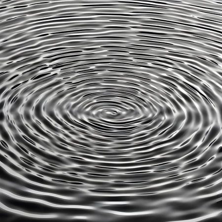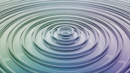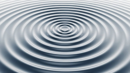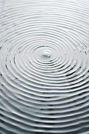 A close-up view of perfectly concentric ripples expanding outwards on a smooth, metallic surface, creating a mesmerizing abstract pattern.