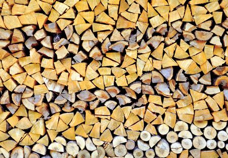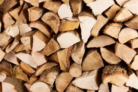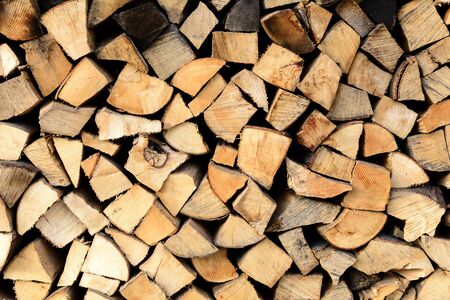 Woodpile with fireplace wood stacked. alternative, renewable energy
