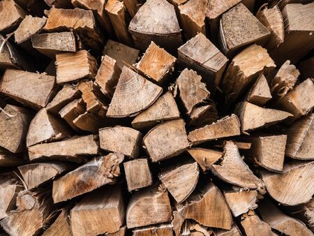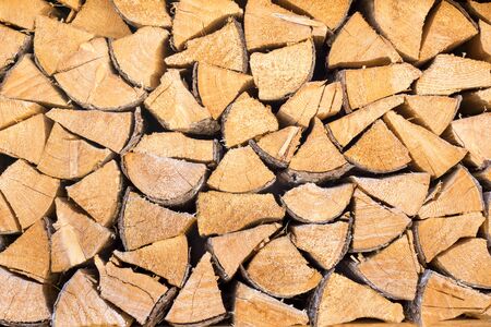 Dry chopped firewood stacked in a wood pile, hi res stock photo