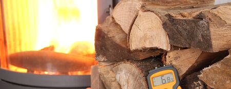 chopped firewood stacked in a woodpile, storage and drying of firewood for home heating