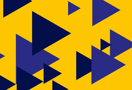 Seamless geometric pattern with triangles in blue and yellow colors.