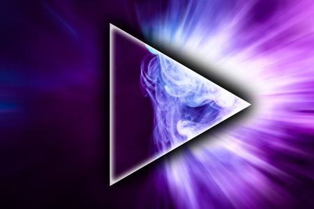 Pink and blue cloud of smoke in the shape of a triangle on black isolated background. Background from the smoke of vape