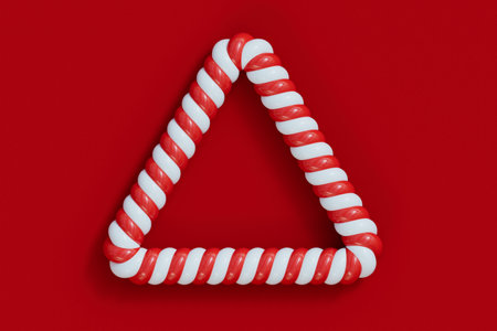 Christmas candy cane red and white striped frame. Festive striped candy. 3D Rendering