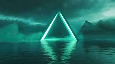 An intriguing design features vibrant green hues and sharp triangular shapes. The light play gives a dynamic and engaging experience, drawing viewers into its depth.