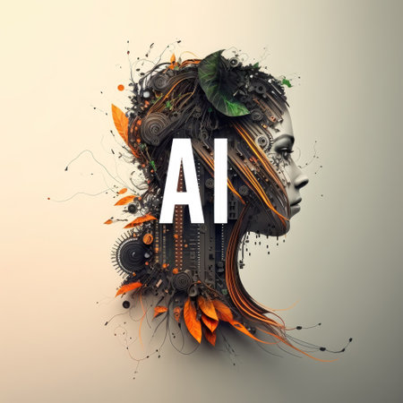 A stunningly portrayal merges a human head with an AI machine, showing intricate cybernetic details.