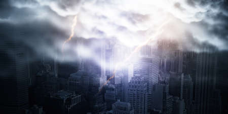 Abstract city backdrop with thunderstorm and mock up place. Weather and dramatic nature concept
