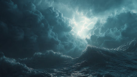 Powerful storms generate huge oceanic surges. Creating using generative AI tools