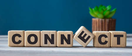 CONNECT - word on wooden cubes on the background of a cactus.