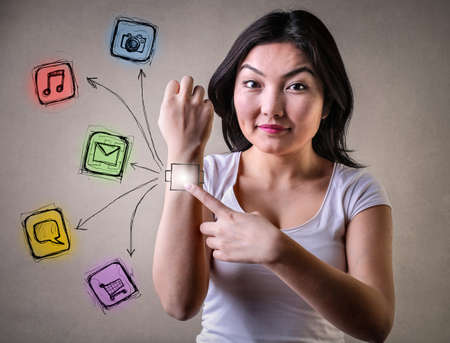 Bali Indonesia June 2 , 2020 : Woman using smart watch