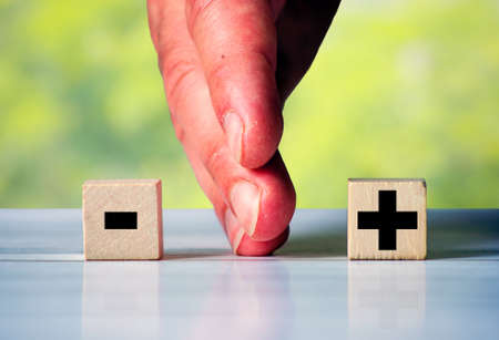positive and negative exchange or plus and minus. concept of opposites, change mindset, customer feedback, vote.