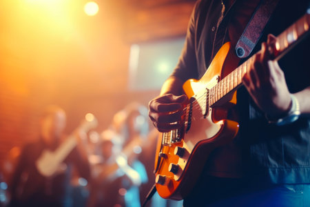 A skilled guitarist plays passionately under bright lights, creating an unforgettable energy that captivates all. Generative AI