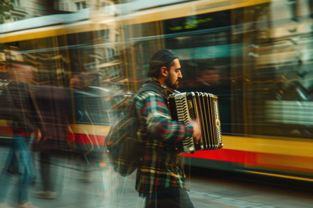Musician playing on accordion on city street