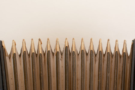 Details of an old accordion, closeup view.