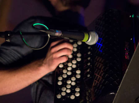 Image of musician playing on accordion closeup.