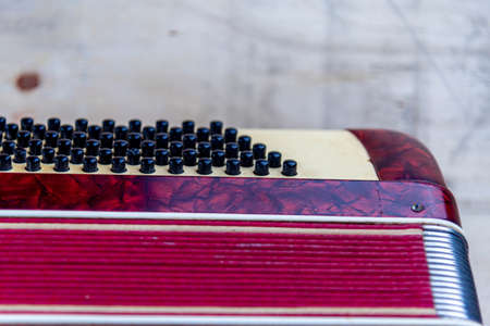 Details of an accordion, a musical instrument for harmonies and folk
