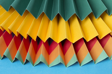 Colorful paper ornaments on blue background