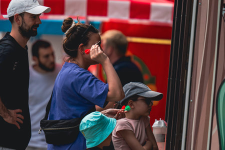 London, UK - May 24, 2017: A caravan selling ice cream and hot dogs along Queen's Walk