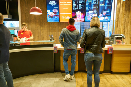MOSCOW, RUSSIA - CIRCA MAY, 2018: inside McDonald's restaurant in Moscow.