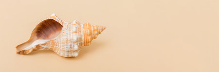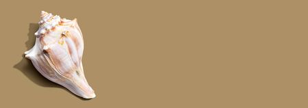 Beautiful seashell on the sandy beach. Summer vacation concept.