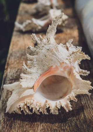 Beautiful huge sea shells - a great gift and souvenir, to keep in mind about the rest and travel. Close-up.