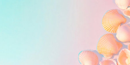 Brightly colored banner featuring seashells in vibrant hues and contrast against empty space