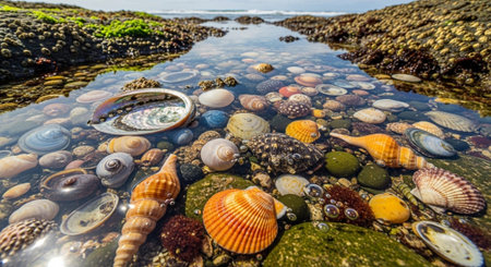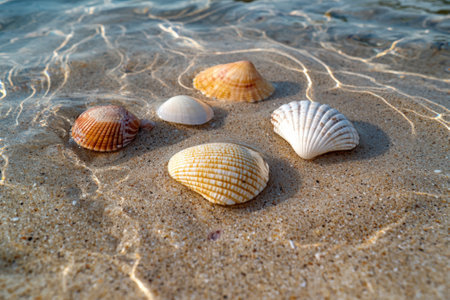 Coastal gems: seashells, delicate remnants of marine life, scattered along beaches as souvenirs of the oceans depth and mystery, beauty capturing the essence of the seaside.