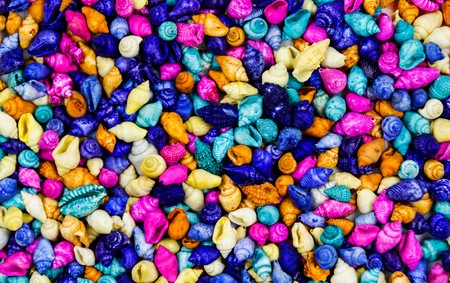 Mixed colorful sea shells as background. Sea shells macro view. Sea shells close up