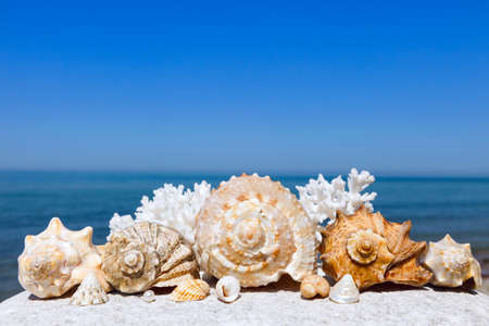 Beautiful huge sea shells - a great gift and souvenir, to keep in mind about the rest and travel. Close-up.