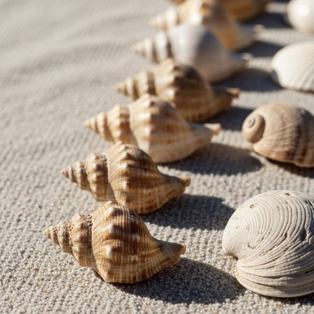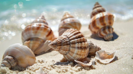 Coastal gems: seashells, delicate remnants of marine life, scattered along beaches as souvenirs of the oceans depth and mystery, beauty capturing the essence of the seaside.